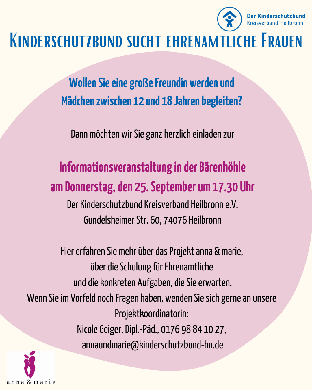 für Bürgerinnen und Bürger der Stadt Heilbronn am Donnerstag, 06. November, um 17 Uhr in der Wollhausstraße 20, Zimmer 1.56 Die Veranstaltung ist kostenfrei. Um eine vorherige Anmeldung bis Montag, 03. November, per E-Mail an Ehrenamtliche.Vormundschaften@heilbronn.de oder telefonisch unter 07131 56-3249 wird gebeten.“